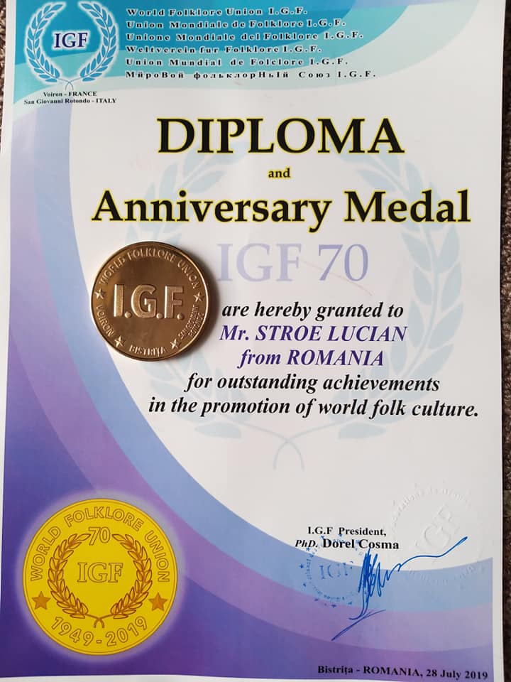 Lângă două fotografii cu Alexandra și cu Lucian Stroe, conducătorul ansamblului, apare și un premiu câștigat de ”Dor de Romanați”, pe care colegii au decis să-l dedice celei care a fost Alexandra Măceșanu.