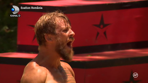 A fost o fractiune de secunda in care Giani s-a oprit si s-a uitat la Ionut, crezand probabil ca acesta ii “furase” replica. Insa, dupa ce a auzit ce a strigat Razboinicul, Giani Kirita si-a pus mana la gura si i-a spus ceva lui Ionut.