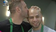 Cei doi s-au luat in brate, s-au pupat si s-au ajutat unul pe celalalt sa isi lege sorturile. Tot spectacolul a fost bineinteles spre amuzamentul tuturor celor prezenti care au avut o zi mult mai buna dupa ce i-au vazut pe cei doi in ipostaze tandre.