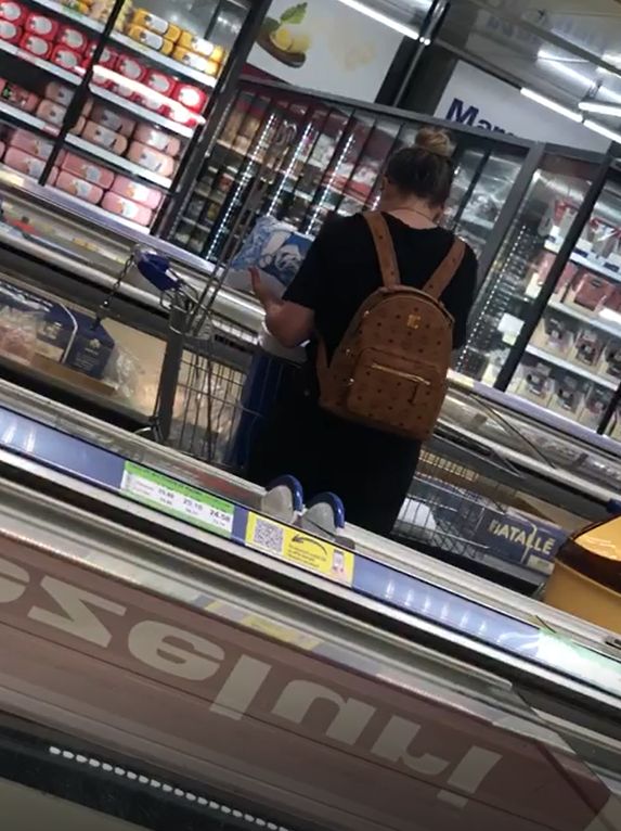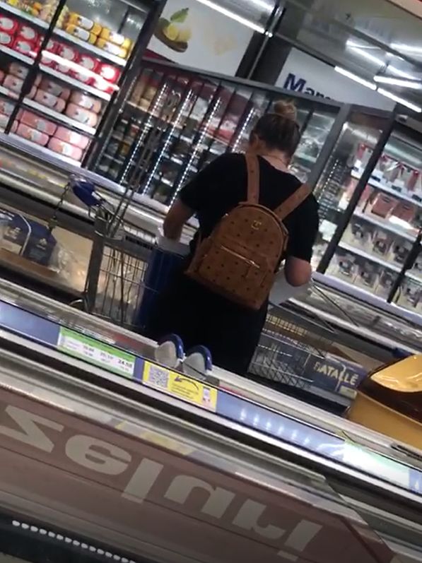Blondina a umplut recipientul cu mai multe pungi de gheață, pe care le-a așezat meticulos în cutie. Totuși, când a văzut că este ceva în neregulă la capac și sistemul de închidere, prezentatoarea TV a mai stat puțin pe gânduri, apoi a luat punga de gheață și a dus-o înapoi la raft.