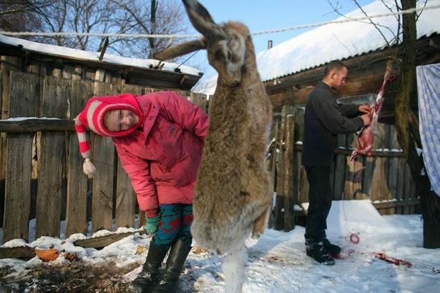 Micuta asta se juca prin curte si mama ei a oprit-o pentru o poza. Ea s-a conformat, dar s-a asezat chiar langa un iepuras care fusese omorat si "pus la uscat". Pe langa acest lucru mai mult decat horror, in spate se vede cum tatal ei jupuia un alt animal.