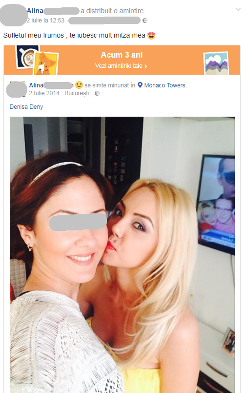 Pe pagina ei de socializare, satena posteaza adesea imagini, amintiri sau mesaje dedicate prietenei ei, Denisa.