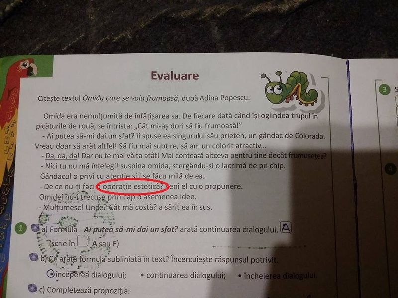 Halucinant! Un test de evaluare pentru clasa a doua, despre operatiile estetice! Vezi ce invata la scoala un copil de 9 ani