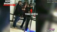 Cateva minute mai tarziu, apar si doamnele!Amandoua sunt blonde, dar au coafuri diferite. Sotia lui Toni Grecu este tunsa scurt, in timp ce partenera de viata a lui Brenciu are parul mai lung si prins intr-o coada de cal. Toni Grecu a disparut intre timp, dar Brenciu nu pare sa se plictiseasca.