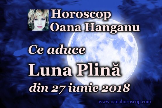 Horoscop Oana Hanganu: ce aduce Luna Plină de joi, 28 iunie 2018. Luna Plină va avea loc Capricorn, zodie în care se află şi Saturn (planeta Responsabilităţii şi a restricţiilor), dar şi Pluton (planeta Transformării). Luna Plină din 27 iunie va fi un moment potrivit pentru luarea unor decizii cu impact pe termen lung, realiste şi cu o clară înţelegere a consecinţelor şi a responsabilităţilor asumate. Cei mai afectaţi de acest important eveniment astral vor fi Capricornii, Racii, Scorpionii şi Taurii.