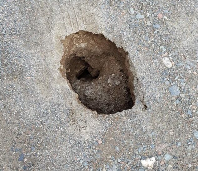 Un barbat a vazut o groapa in fata casei sale si a bagat telefonul acolo pentru a vedea ce se afla inauntru.