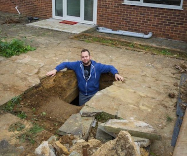 “Am crezut că este un canal de scurgere acoperit prost sau o dală de beton care s-a prabuşit”, a spus el. “M-a îngrozit gândul că s-ar putea mări şi mi-ar înghiţi toată casa. Când am dat la o parte câteva dale de beton, am văzut o scară care coboră în gaură.