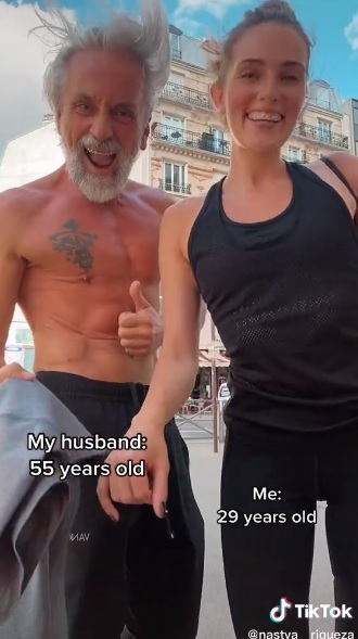 TikTokerul arată la 55 de ani, mai bine decât mulți tineri de 20. Se pare că sportul își spune cuvântul și asta se vede și din starea lui de spirit, care este mereu vioaie, plină de energie și vână. Iubita lui este mai simplă, liniștită, la fel de zâmbitoare, însă nici ea nu ignoră sportul.