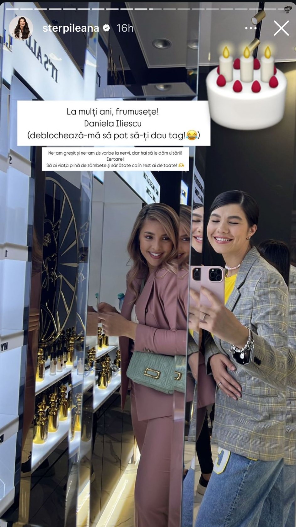 Atunci i-am zis că nu-i nimic pentru că o să fie prezent la nuntă și la cununia religioasă. Nu m-am gândit că ar trebui să o chem pe Daniela separat, nici prin cap nu mi-a trecut, știam că nu o să vină fără Culiță și are unele neînțelegeri cu Geta, Ileana, mama, dar sunt niște neînțelegeri mici, banale, din punctul meu de vedere. Nu e un ditamai scandalul. Am știut că nu vrea să vină fără Culiță și nu am insistat să o pun într-o situație proastă și să nu se simtă confortabil. Eu am vorbit cu ea, a lăsat un comentariu că n-a fost chemată și i-am spus că nu e în regulă comentariul, pentru că ea știe clar că nu ar fi venit fără Culiță și, într-adevăr, și-a cerut și ea scuze și a zis că a fost un impuls de moment.