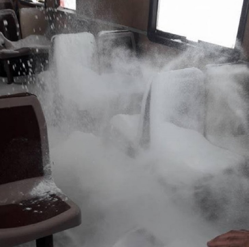 Loviti de frig si zapada, pasagerii s-au speriat si au creat o stare de panica, plecand din vagonul cu pricina.