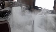 In urma unei defectiuni, podea unui tren CFR nu a mai rezistat si s-a rupt, astfel incat, foarte multa zapada a patruns in vagon.
