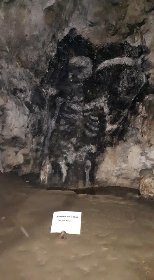 De altfel, peștera este plină de fel de fel de ”desene” realizate de apă pe perete, multe dintre ele având și denumiri. Nici legendele nu sunt puține legate de această peșteră aflată în continuarea drumului ce te duce la Mănăstirea Polovragi. Una dintre legende susține că, pe vremuri, cine intra în peșteră să se adăpostească, dar avea suflet rău, nu era „lăsat” să depășească moartea cu coasa (un alt desen celebru de pe peretele peșterii), care îl lua la ea pe necredincios, omorându-l în chinuri groaznice.