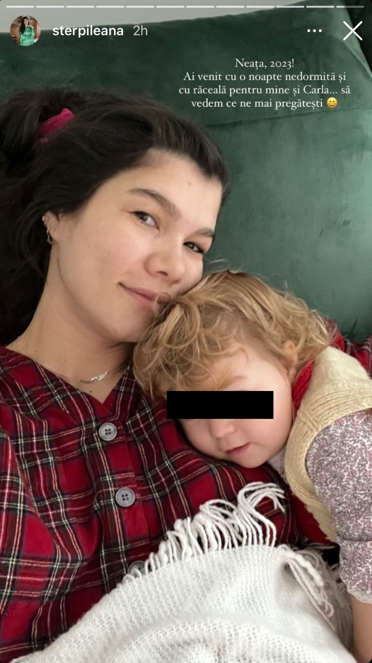 „ Neața, 2023! Ai venit cu o noapte nedormită și cu răceală pentru mine și Carla... să vedem ce ne mai pregătești.”, a fost mesajul transmis de Ileana Sterp pe pagina sa de Instagram.