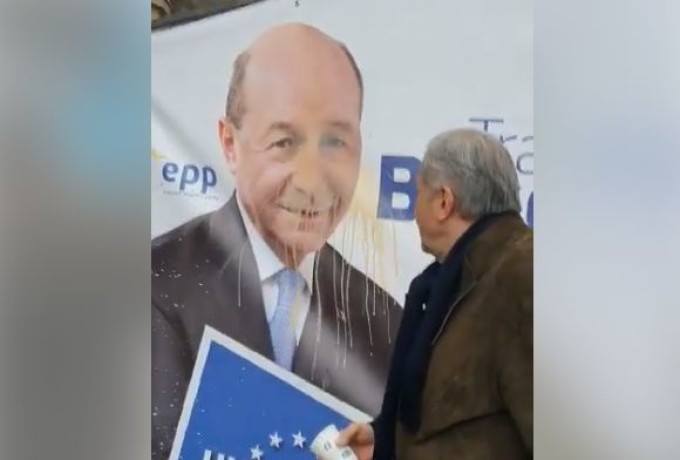 Ilie Năstase a fost filmat în timp ce distruge un afiș cu Traian Băsescu, iar logodnicul Elenei Udrea a reacționat vehement la adresa fostului mare sportiv.