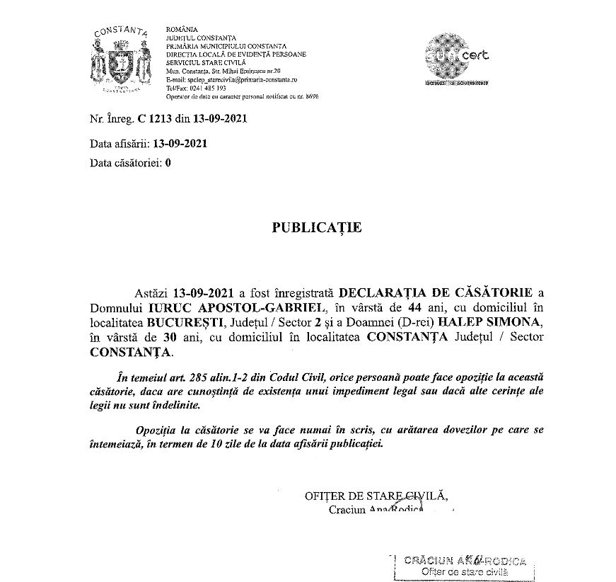 Citeste si: Primele imagini cu Simona Halep din ziua cununiei civile. Cum arată rochia campioanei