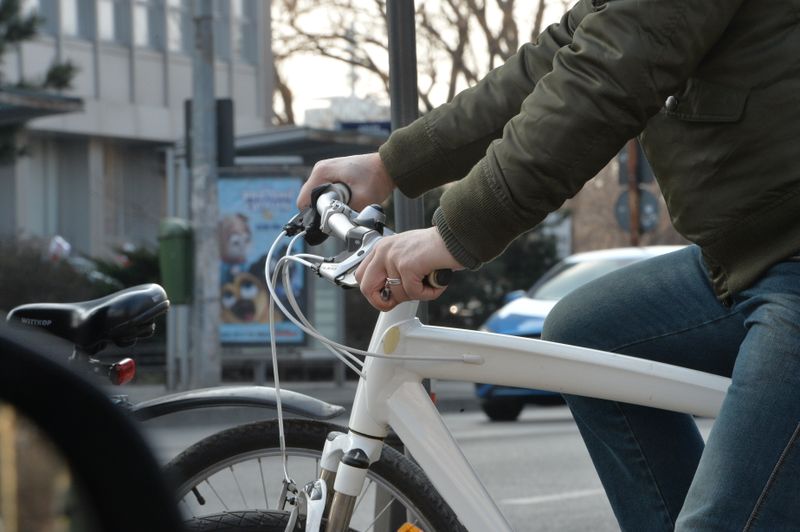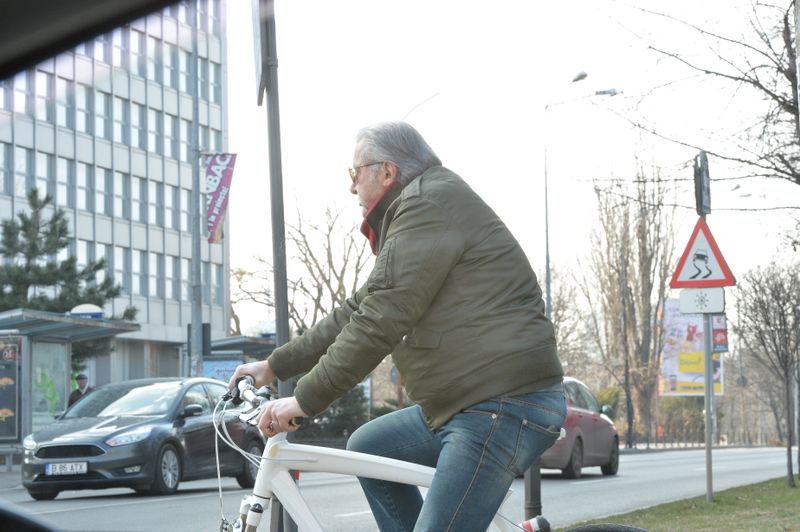 Ilie Năstase poartă verighetă în timp ce merge pe bicicletă.