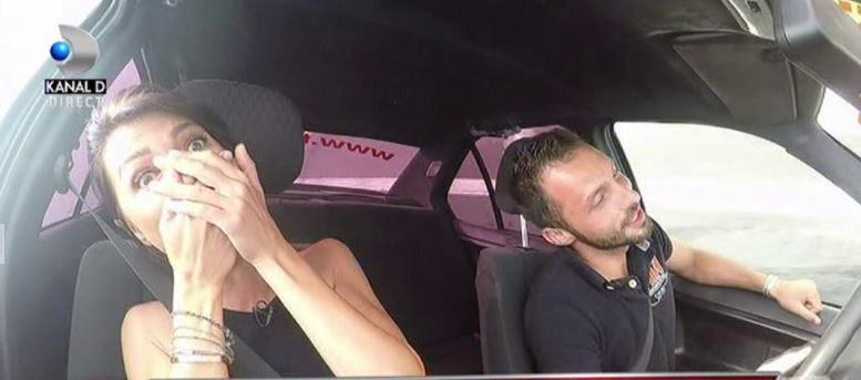 Frumoasa prezentatoare tv a avut parte de adrenalina la maxim in timp ce Rares a facea cascadorii cu masina.