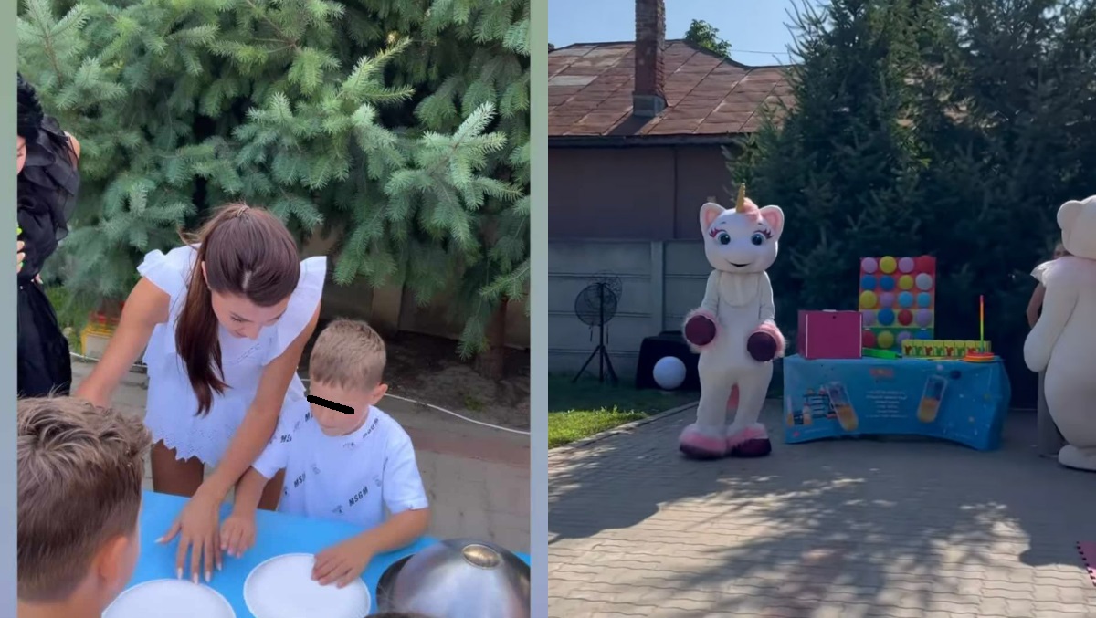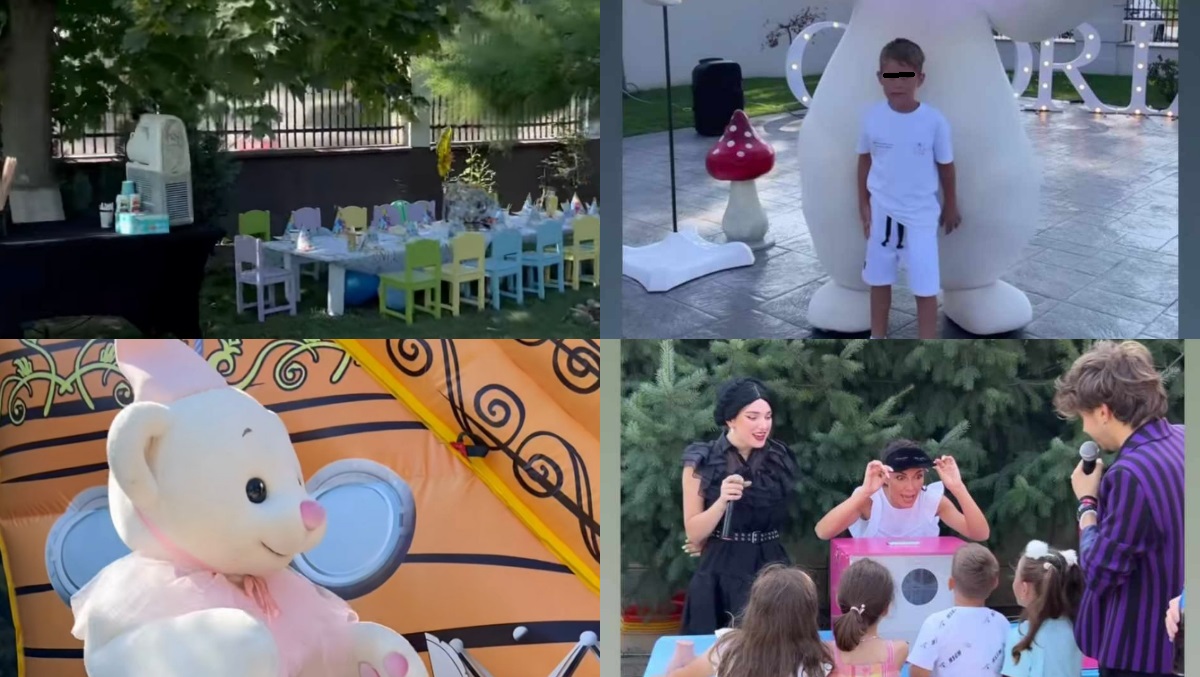 Ilinca Vandici și Andrei Neacșu nu s-au uitat la bani și în curtea vilei din Tunari au organizat o petrecere cu de toate: jocuri, animatori, figurine, tobogane gonflabile, cadouri, baloane, vată pe băț și multe alte lucruri interesante și preparate pe măsură.