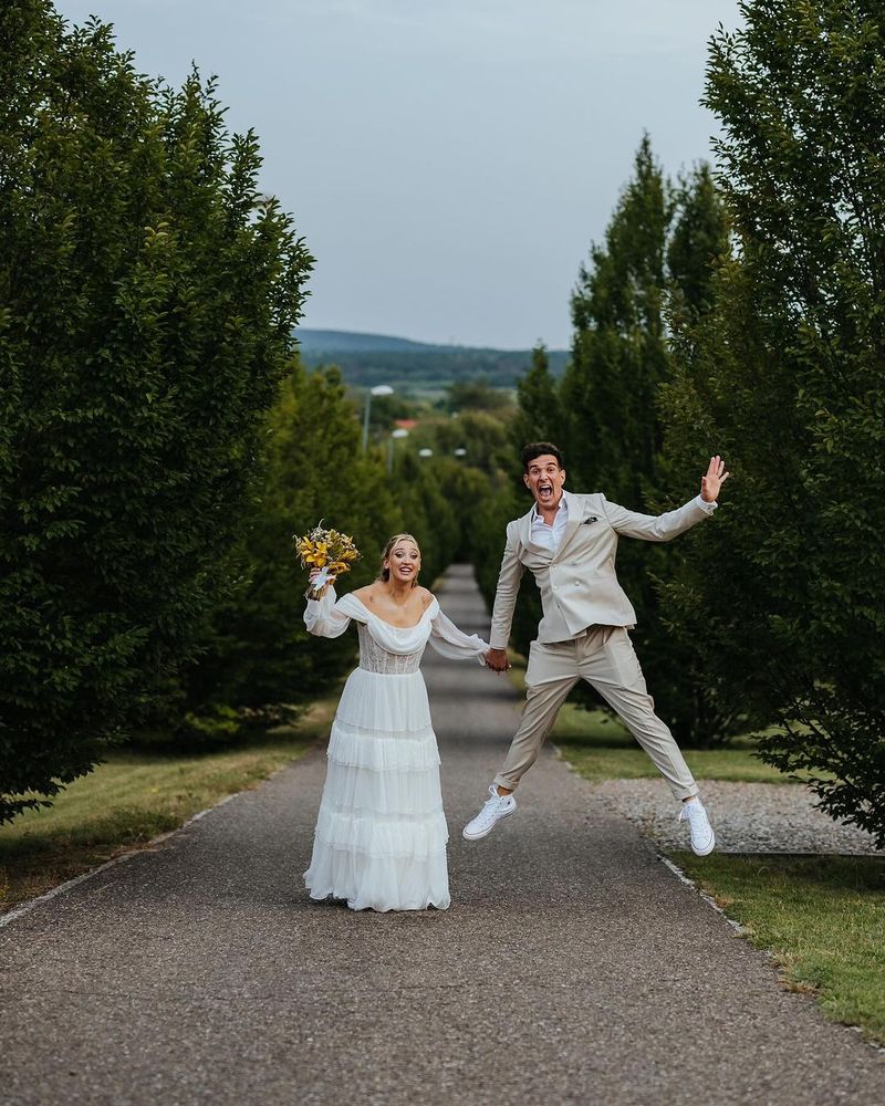 Astfel, rochia a fost una simplă, dar foarte frumoasă și elegantă, exact așa cum și-a dorit actrița. Conform site-ului brandului care s-a ocupat de ținuta miresei, rochia ar avea ca preț în jur de 1500 de lei, un preț relativ mic pentru o rochie de mireasă, comparativ cu modelele pe care și le aleg miresele în ziua de azi.