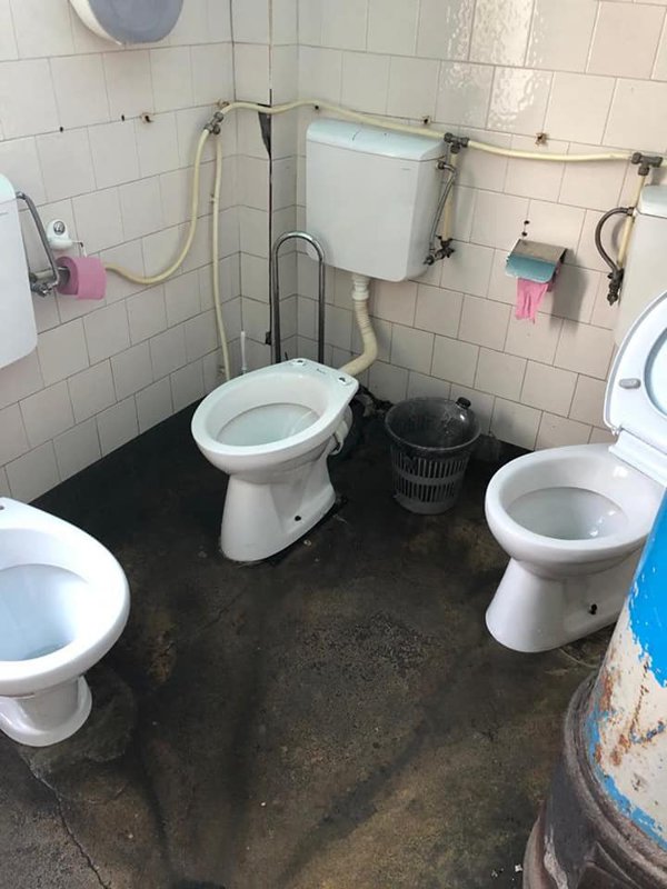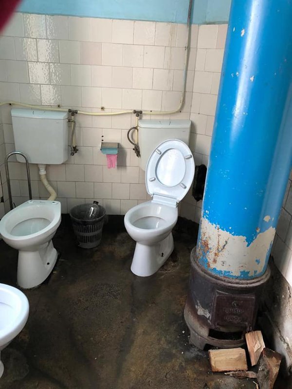 O imagine a devenit virală pe rețelele de socializare: toaleta cu 3 wc-uri dintr-un spital de psihiatrie din Cluj.