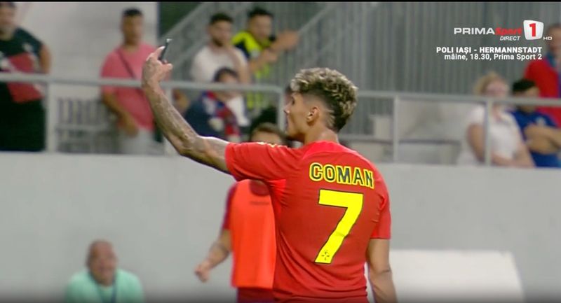 Aplaudat de toată suflarea roș-albastră, Florinel Coman a oferit și două momente ce au făcut deliciul oamenilor. Prima s-a petrecut atunci când a găsit un telefon pe teren și a simulat că vrea să își facă un selfie, iar al doilea are legătură cu viața lui privată.
