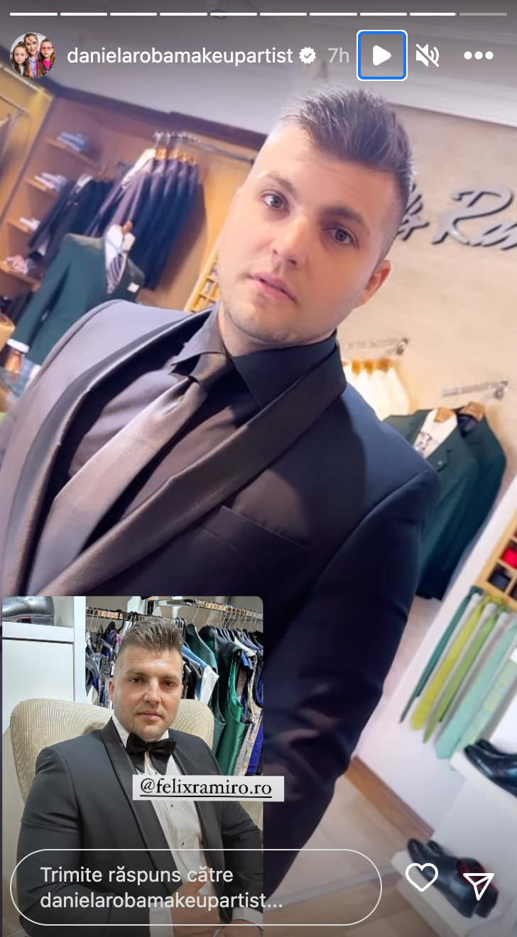 În urmă cu doar câteva ore, Dana Roba a postat în mediul online un scurt filmuleț cu partenerul său, în timp ce proba un costum foarte elegant, demn de un ginere.