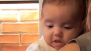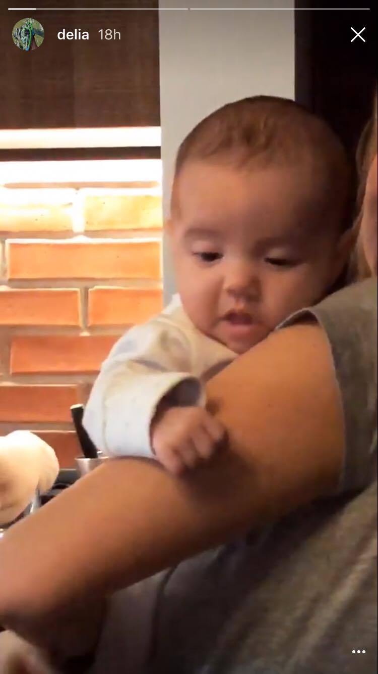 Delia a filmat-o pe nepotica ei, in timp ce se afla in bratele mamei, iar fetita a gangurit cand matusa ei a inceput sa vorbeasca cu ea.