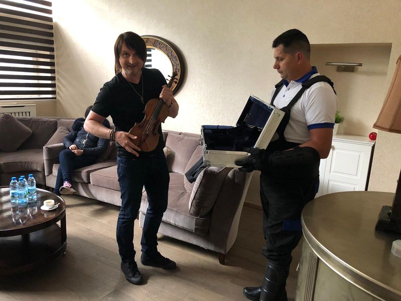 Mai mult decât atât, talentatul violonist este singurul deținător al cifrului cutiei în care stă vioara de 7 milioane de euro și, pentru a fi sigur că nu va păți ceva, a cerut ca paznicul prețiosului intrument să fie, pentru orice eventualitate, înarmat. Iar bodyguardul cu pricina, cu o alură fioroasă, avea grijă ca nimeni să nu se apropie de vioară, în afara lui Edvin Marton. ”Nimeni nu pune mâna nici9 măcar pe cutie. Doar domnul Edvin marton și cu mine avem voie sa atingem cutia cifrată. Nu mă pot juca cu așa ceva, valorează enorm”, ne-a spus, fioros, paznicul viorii violionistului Edvin Marton.