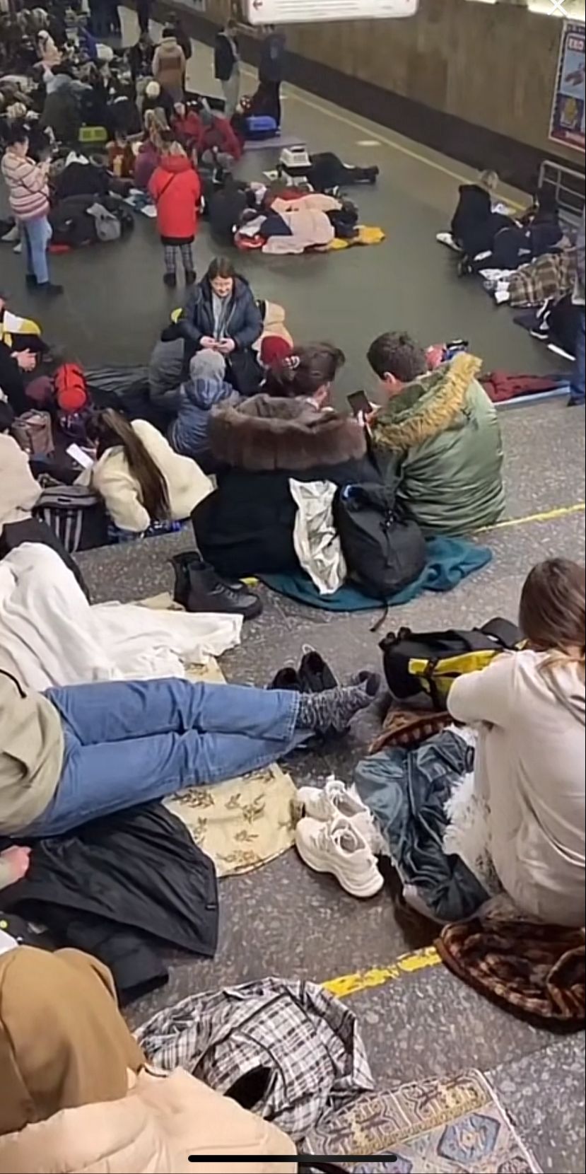 O altă zi pe care mii de ucraineni din Kiev o petrec la metrou, adăpostindu-se de armata rusă. Femei, copii, bărbați, animale stau înghesuiți, îmbrăcați gros, unul lângă altul să-și țină de cald, și speră că ziua de mâine va fi mai bună. Aceștia au fugit din propriile case de frică și au mers la metrou, acolo unde s-au gândit că sunt în siguranță. La fel au procedat mii de ucraineni, fie din Kiev sau din Harkov, cel de-al doilea oraș ca mărime din Ucraina.