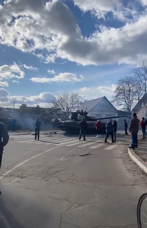 Mai multe imagini surprinse de un internaut, iar mai apoi postate pe Twitter fac înconjurul lumii în aceste momente. În poze și în filmulețe sunt surprinși mai mulți ucraineni care opun rezistență în fața armatei rusești cu mâinile goale! Oamenii se pun în genunchi în fața tancurilor inamice sau își arunci bicicletele sub vehiculele de luptă blindate. Totul fiind un efort în încercarea de a-i încetini pe ruși să ajungă în capitală. Filmările au fost făcute în localitatea Bakmak, la 200 de kilometri distnță de Kiev.