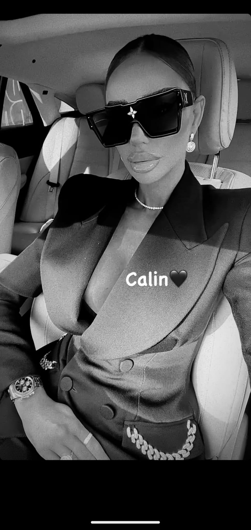 Bianca Drăgușanu a purtat un costum negru, foarte simplu, format din sacou și pantaloni, alături de ochelari de soare negri. Pentru a fi cât mai discretă în ceea ce privește ținuta sa, blondina a ales să-și strângă părul într-un coc, conform Spynews.
