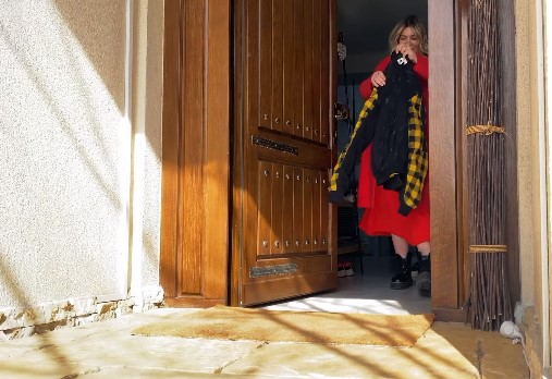 Gina Pistol a plecat spre maternitate îmbrăcată într-o rochie vaporoasă de culoare roșie și un palton în aceeași nuanță. În picioare a purtat bocanci, comozi, fără toc, de culoare neagră. Vedeta a ieșit pe ușă doar cu geaca lui Smiley în mână, pe când proaspătul tătic era încărcat de bagaje pe care abia că mai putea să le ducă. În total trei genți mari pline până la refuz și o cutie, toate fiind hainele prezentatoarei tv, dar și îmbrăcămintea și accesoriile fiicei sale.