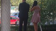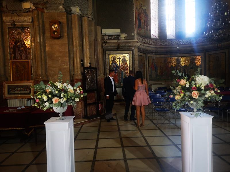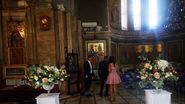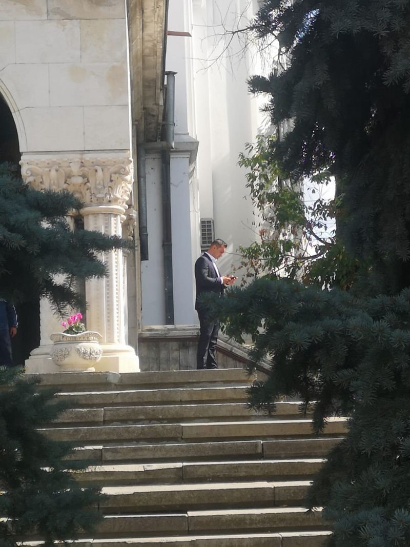logodnică. Marinel a intrat în biserică, și-a ocupat scaunele, iar apoi a simțit nevoia să iasă la aer, discutând, vizibil emoționat, despre detaliile botezului cu femeia pe care o iubește, aceasta din urmă încercând să îl calmeze.