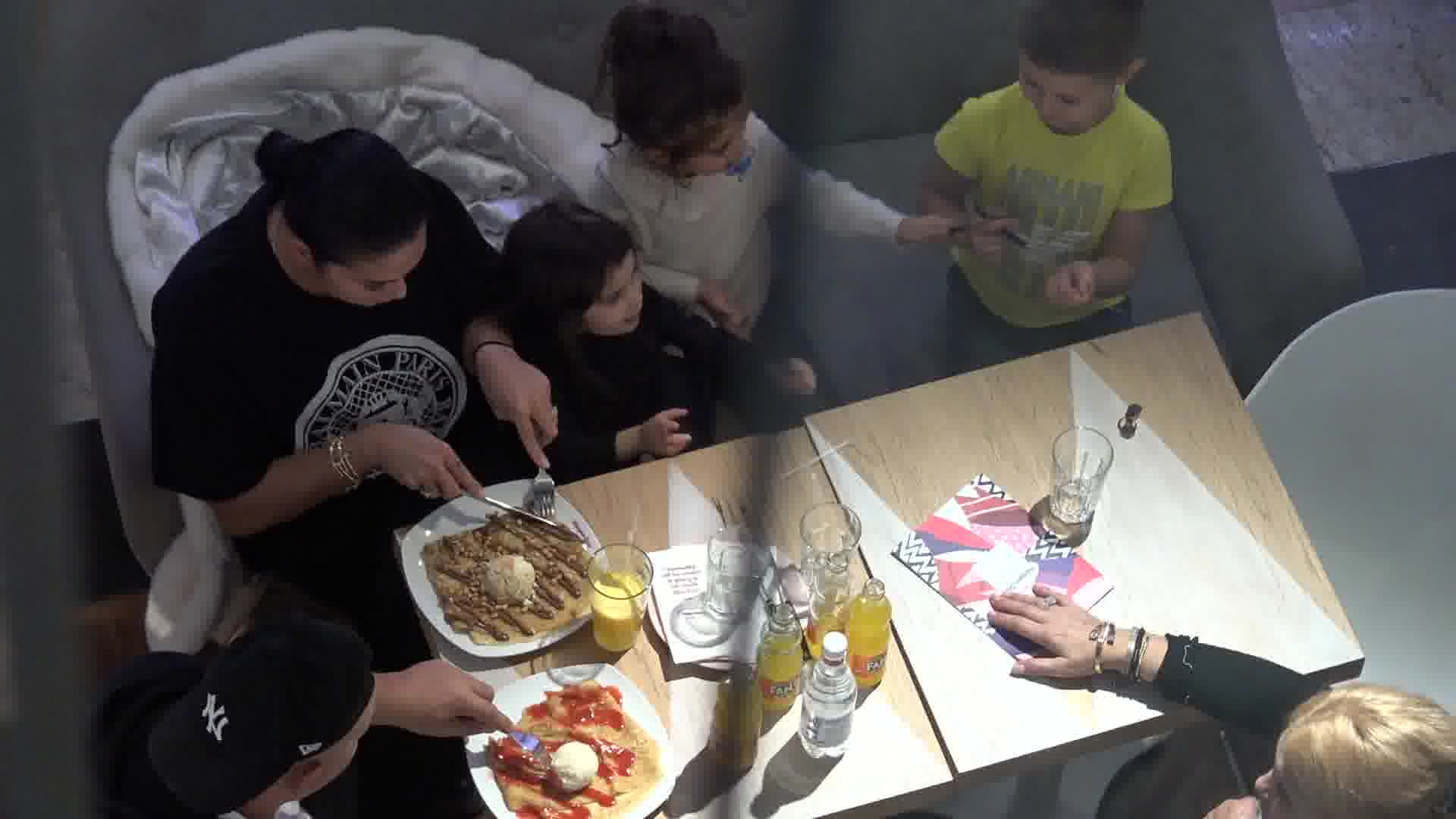 După ce s-au plimbat câteva ore prin mall, Roxana Dobre, însoțită de copii, a decis să cedeze la rugămințile lor și, evident, să îi răsfețe pe micuți. Așa că frumoasa parteneră de viață a lui Florin Salam i-a dus pe micuți în zona de restaurante de la mall și acolo a comandat cea mai mare clătită cu putință, pentru a le da ”ceva dulce” copiilor. Iar aceștia, nerăbdători nevoie mare să se înfrupte din apetisanta clătită – în ciuda faptului că una dintre fetițe are încă suzeta – s-au apucat să se joace la masă cu tot felul de ustensile de pe acolo, duelându-se în joacă până când a apărut, adusă de un chelner, și