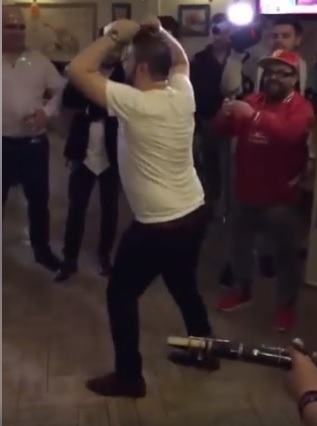 Momentul este cu atât mai amuzant cu cât mişcările manelistului par să se potrivească de minune cu ritmul colindului.