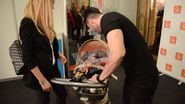Dupa inedita defilare pe podium, Sofia a fost prezenta si… la interviurile date de Dragusanca si Slav dupa eveniment! Micuta a stat, initial, in bratele mamei, dar in timpul declaratiilor, a fost atat de atrasa de microfonul reporterilor de la Kanal D, incat a vrut sa puna mana pe el, semn ca o atrage deja meseria de jurnalist!