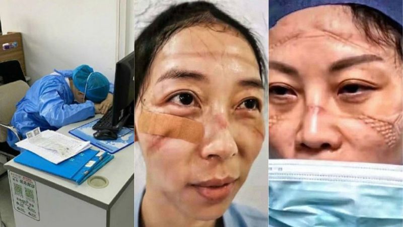 Mai multe fotografii cu ei au fost publicate pe rețelele de socializare îi arată pe acești medici la un nivel de epuizare extrem.