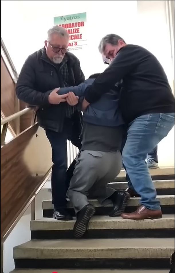 Momentul a fost filmat și publicat ulterior pe rețelele de socializare de presa locală. În filmuleț se vede cum trei bărbați îl cară pe trepte pe pacient, care urlă din toți rărunchii că nu poate înainta. În timp ce unul dintre ei îi zice să nu se mai vaite, altul spune că ar fi trebuit, totuși, să folosească un cărucior.