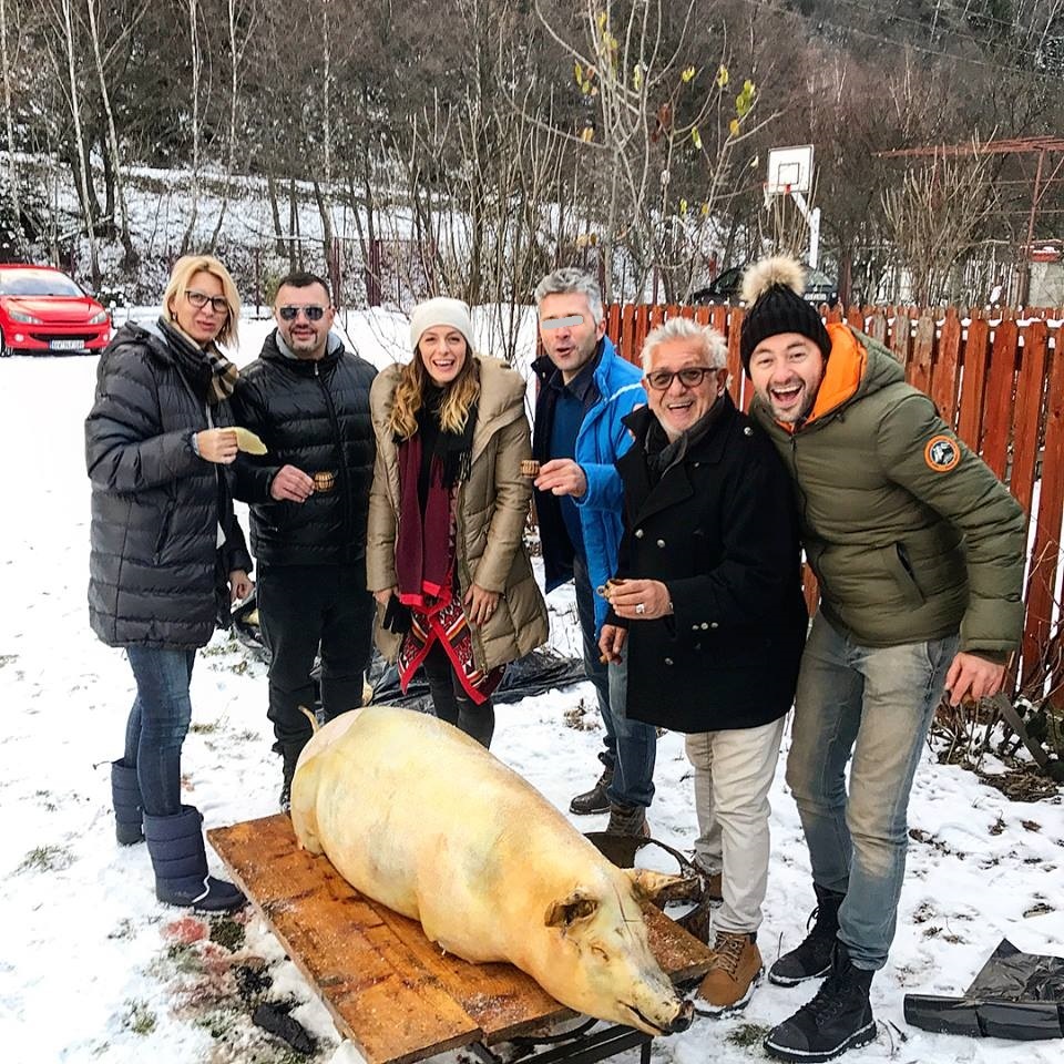 Cei doi si-au invitat prietenii, printre care Ovidiu Lipan Tandarica si Monica Iagar, la casa lui Norris din Campulung Muscel, acolo unde, conform traditiei, s-a taiat porcul.