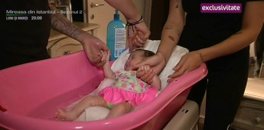 Imagini in exclusivitate de la baita de seara a fetitei Adelinei Pestritu. O echipa Teo Show a mers acasa la Adelina si Virgil si a asistat la baia de seara.