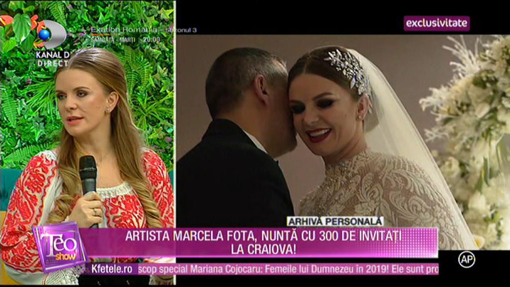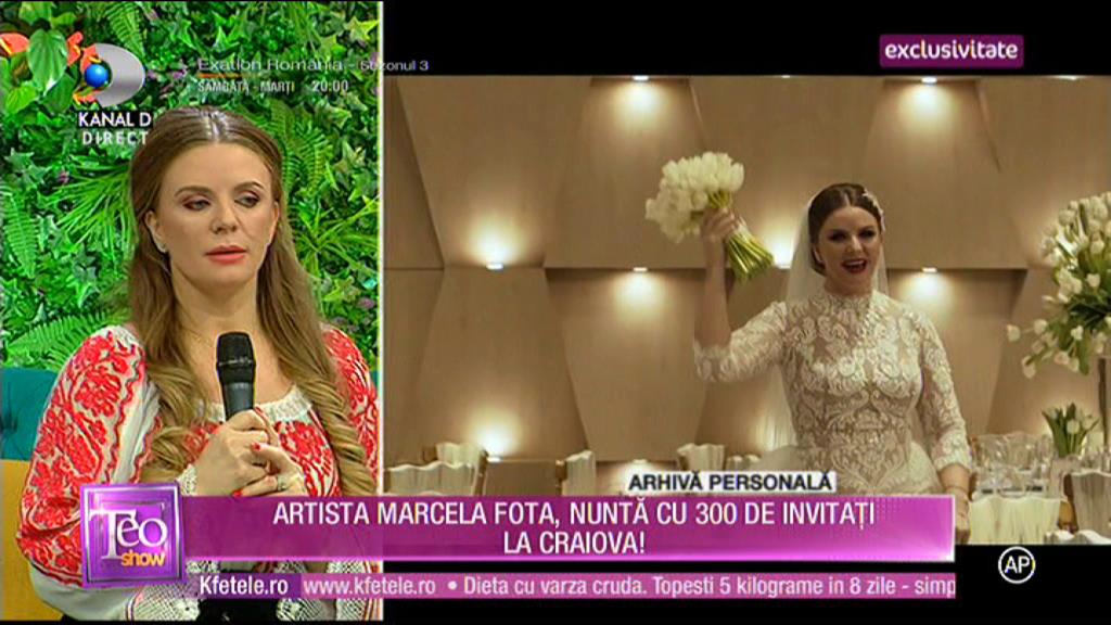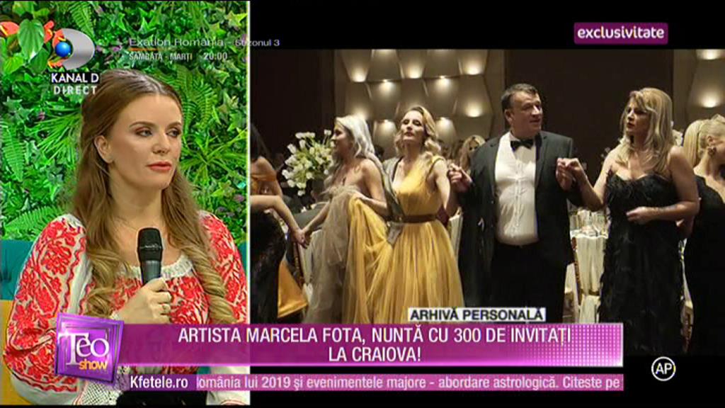 Marcela Fota s-a căsătorit după 13 ani de relație. Artista de muzică populară, sora mai mică a Marianei Ionescu-Căpitănescu, a povestit astăzi la Teo Show cum a fost la petrecerea de nuntă, la care au fost peste 300 de invitați.