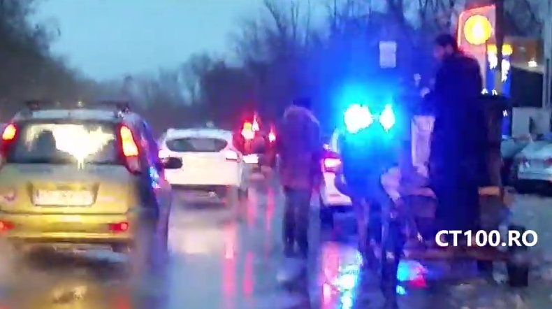 Intreaga scena s-a petrecut in Constanta. Nu va imaginati ca a fost ceva la intamplare. Carul cu boi din care fata bisericeasca stropea cu Aghiasma in jur era escortat de o masina a Politiei cu girofarul pornit.