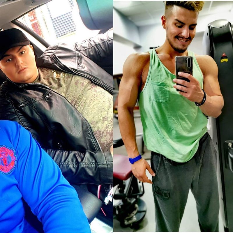 ”Pentru cei ce nu mă cunosc. Sunt eu în ambele poze, în cea din stânga 130 kg în cea din dreapta 80”, este mesajul postat de Nicos în dreptul unor poze comparative.