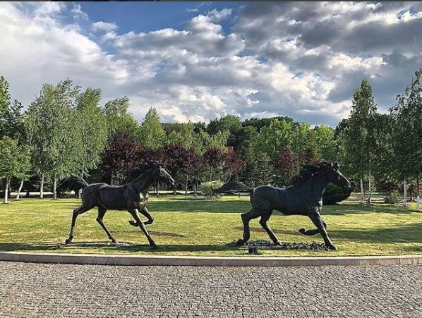 Imagini incredibile din vila lui Dan Voiculescu. Doi cai sculptaţi păzesc intrarea în casă