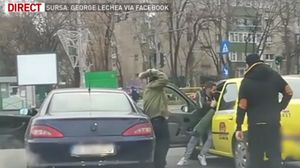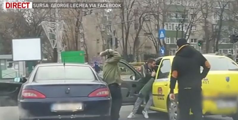 Şoferul unei maşini a fost împins cu picioarele de un taximetrist. La incidentul violent au luat parte mai mulţi bărbaţi, cei implicaţi împărţindu-şi pumni şi vorbe grele. Momentan nu se ştie de la ce a pornit scandalul. Imaginile au apărut mai întâi pe Facebook, înainte de a fi difuzate la TV.