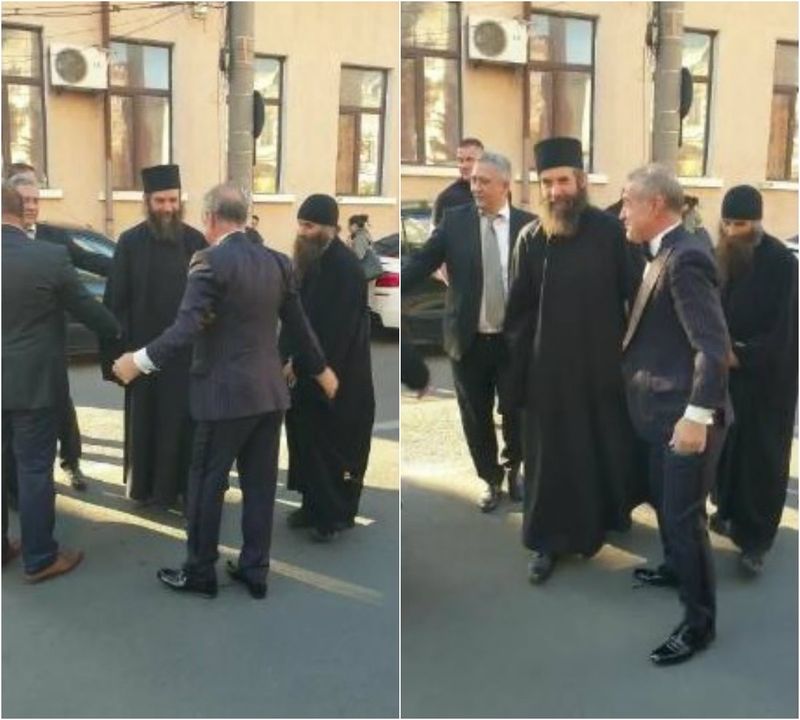 Evident, latifundiarul din Pipera, Gigi Becali, i-a întâmpinat foarte frumos pe călugări.