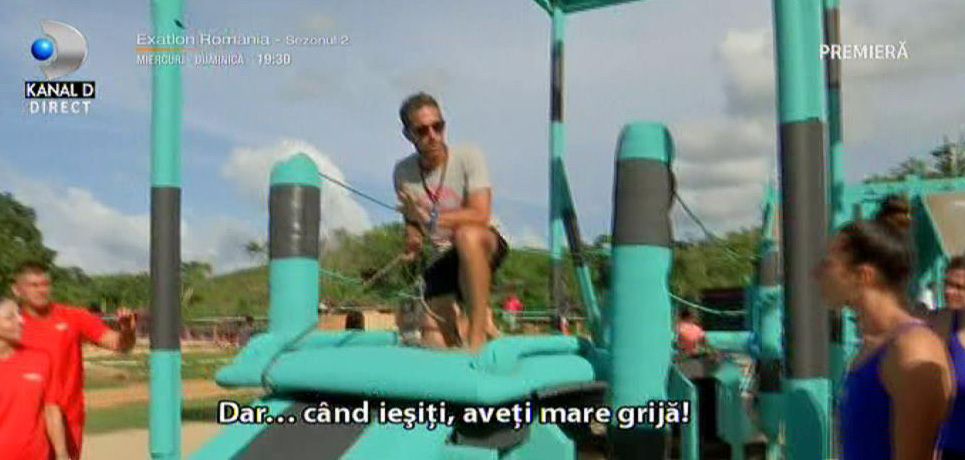 In reportajul lui Adi Velea din culisele Exatlon Romania se vede cum un barbat le explica tuturor celor 20 de concurenti cum trebuie sa abordeze traseul turcoaz.