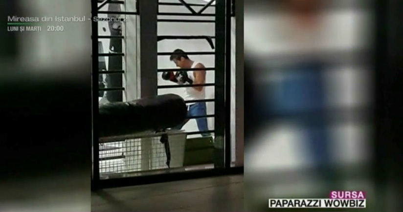 Echipat cum se cuvine, Mircea Badea lovea cu poftă într-un sac de box. Nervos sau poate doar pus pe treabă, decis să ardă caloriile, Badea se antrenează dând cu pumnul în sacul de box din incinta sălii de sport.