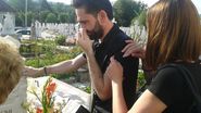 Marcat vizibil, rascolit de amintiri si dor, Aurelian Preda a izbucnit in lacrimi cand a ajuns langa crucea de piatra montata pe mormantul mamei sale. Cei din familie au sesizat momentulde slabiciune emotionala si au incercat s ail incurajeze cat au putut de mult.