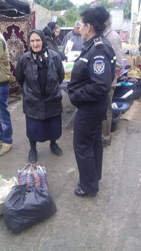 ”Se întâmplă în România. În piața la Rădăuți, aceasta “doamnă” în uniformă o ceartă pe bătrânică pentru că nu vinde la tarabă. Oare ea nu stie că tarabele sunt ocupate de bișnițari care aduc produse de afară? Avea, săraca, două sacoșe cu legume…”, comentează și martorul la această scenă, cel care a surprins, de altfel, și imaginea.